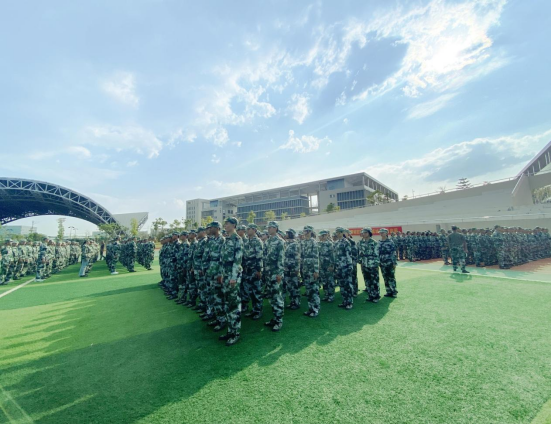 聞聲望去,迷彩色的陣列成為了最亮麗、最耀眼的風景。天高云闊,操場上、校園道路上,同學們身姿挺拔、器宇軒昂、聲音嘹亮。