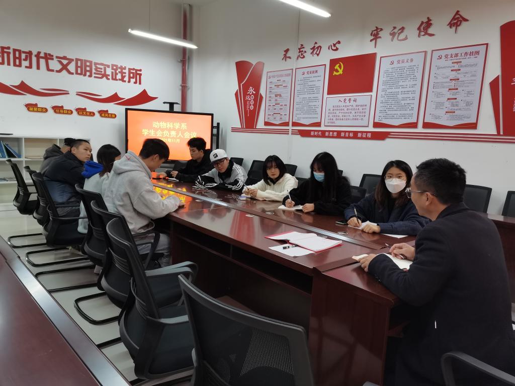 11月15日下午,動物科學系在應星樓415辦公室召開了系部學生會負責人會議。會議由動物科學系負責人吳輝生主任主持,周滿平老師以及系部學生會各部門負責人參加。