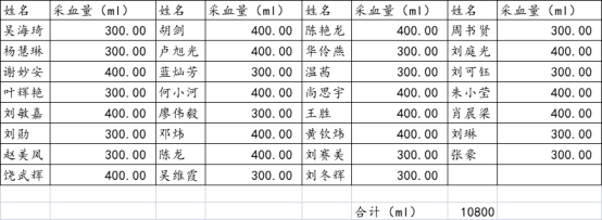 本次活動合計采集有效血液10800ml,希望能為處在病痛中的人們帶來光明與希望。