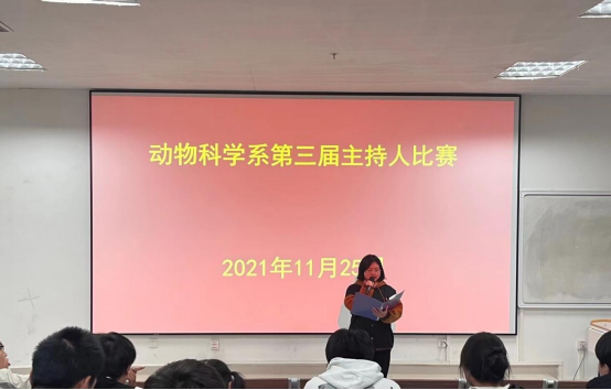 為了活躍校園文化氛圍,彰顯系部學生風采,展現學生青春活力,11月25日晚,動物科學系第三屆主持人比賽在A2-111教室舉行。本次比賽由動物科學系學生會學習部主辦,系學生會會長郭龍海及學生會各部門負責人擔任此次比賽評委。