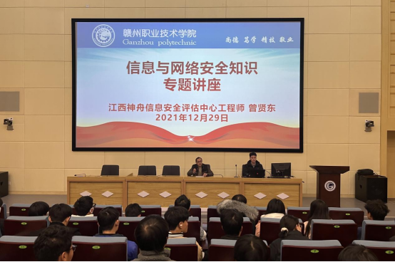 為進一步加強學院信息與網絡安全工作,增強學院師生的網絡安全意識,提高網絡安全防護技能,12月29日,學院邀請到江西神舟信息安全評估中心有限公司的信息安全工程師曾賢東來我院開展“信息與網絡安全知識”專題講座。講座由信息中心負責人王明瑞主持,各部系網絡聯絡員、網絡評論員以及學生代表等共200余人到場聆聽。