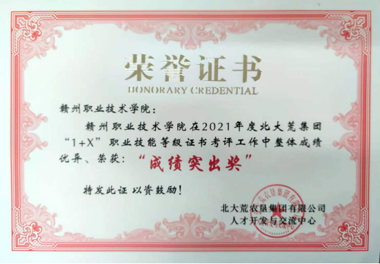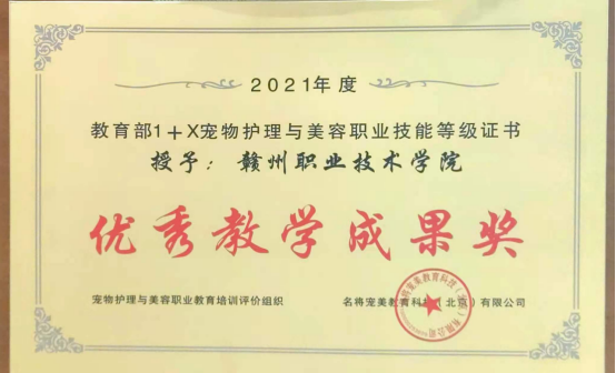 2021年,動物科學系參與了“1+X”寵物護理與美容和“1+X”家庭農場畜禽養殖兩個證書試點工作,學生考證通過率100%,分別獲得2021年度“1+X”寵物護理與美容職業技能等級證書優秀教學成果獎、家庭農場畜禽養殖職業技能等級證書考評工作成績突出獎。