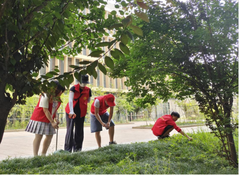5月6日上午,在校園里活動的這一群“紅馬甲”,他們是藝術設計系的學子。他們手里拿著工具,身上揮灑著青春的汗水,為校園的美麗貢獻自己的力量。