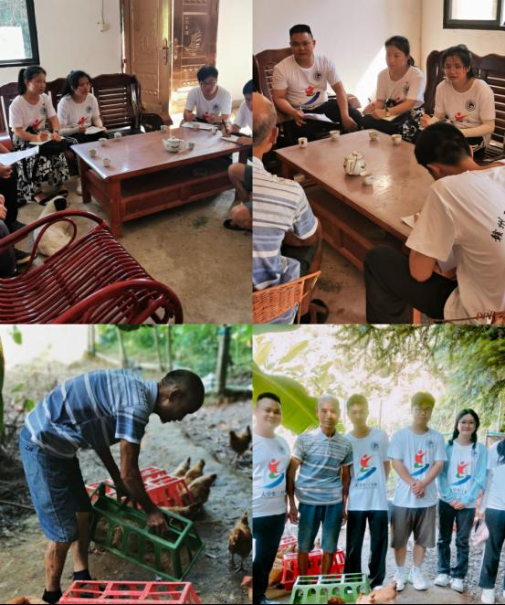 7月12日下午,志愿者團隊還去了優秀養殖戶吳私精老伯的家中調研。吳老伯對志愿者提出的實際養殖方面的各種問題都進行了耐心解答,并且給志愿者團隊簡要講述了他的飼料調配、經營計劃、獸藥使用等一系列養殖經營技巧。熱情的吳老伯還邀請志愿者團隊參觀了他的立體生態養殖基地與果林菜園,為志愿者團隊逐一介紹了他們的品種類型與養殖價值,讓志愿者們學習到了很多實用的養殖技巧。
