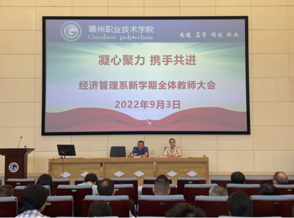 9月3日上午,經(jīng)濟(jì)管理系召開新學(xué)期全體教師大會,學(xué)院副院長歐陽榮華出席會議,會議由系部負(fù)責(zé)人盧曉娟主持,系部全體教師參加會議。