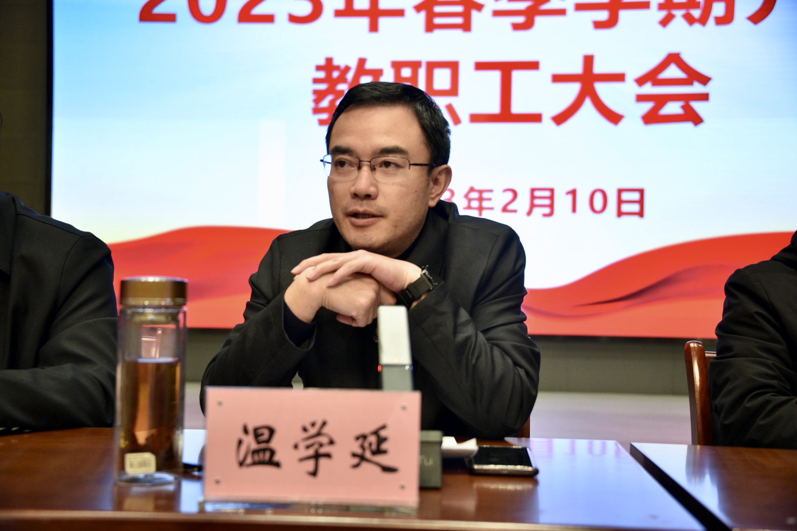 新學(xué)期,新起點。2月10日下午,全院師生以飽滿的精神參加了新學(xué)期第一次教職工大會,會議圍繞教育教學(xué)提質(zhì)增效這一中心,強調(diào)全體教職工要以高度的熱情、強勁的斗志,“零預(yù)熱”投入到新學(xué)期的工作中去。要以“時時放心不下,事事放心不下”的責(zé)任感,以“父母心”對待各項工作。要緊盯學(xué)生健康狀況,保障師生健康和校園安全穩(wěn)定。要以“五個一”為抓手,全力做好開學(xué)前的各項準備。全體教職工要統(tǒng)一思想、凝聚共識,營造同心聚力的工作氛圍,統(tǒng)籌推進學(xué)院高質(zhì)量發(fā)展。