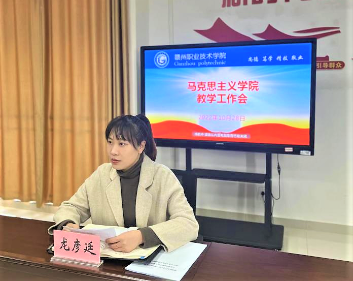 2022年,龍彥廷任贛州職業技術學院馬克思主義學院副院長,她在認真研讀大量教育部、人社部關于思想政治理論課實施方案的基礎上,根據高職、中職、高技、中技人才培養方案,重新整合與設置2022年馬院思政課程共計十八門,做到原三校課程統一;疫情防控常態化期間,她更是積極應對教學困難,通過網絡教研會議、網絡集體備課等形式,完善了網絡平臺的思政課教學資源,制定了遠程教學執行方案,通過MOOC、學習通、騰訊會議等多種教學手段保障了思政課教學有章法、有實效。
