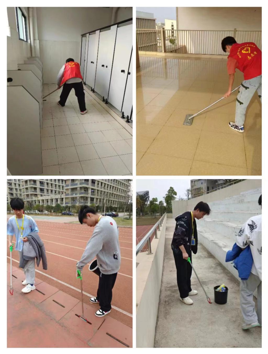 為維護校園環境、保障學生擁有一個舒適、優雅、干凈的學習、生活環境,系學生會組織開展打掃教學樓、宿舍樓、運動場、洗手間等公共區域活動。志愿者們滿懷熱情,分工明確,通力協作,不怕臟和累,拿著掃帚、撮箕等清潔工具,對校園各個區域進行衛生清掃。大家干得熱火朝天,忙碌的身影成了一道亮麗的風景線。