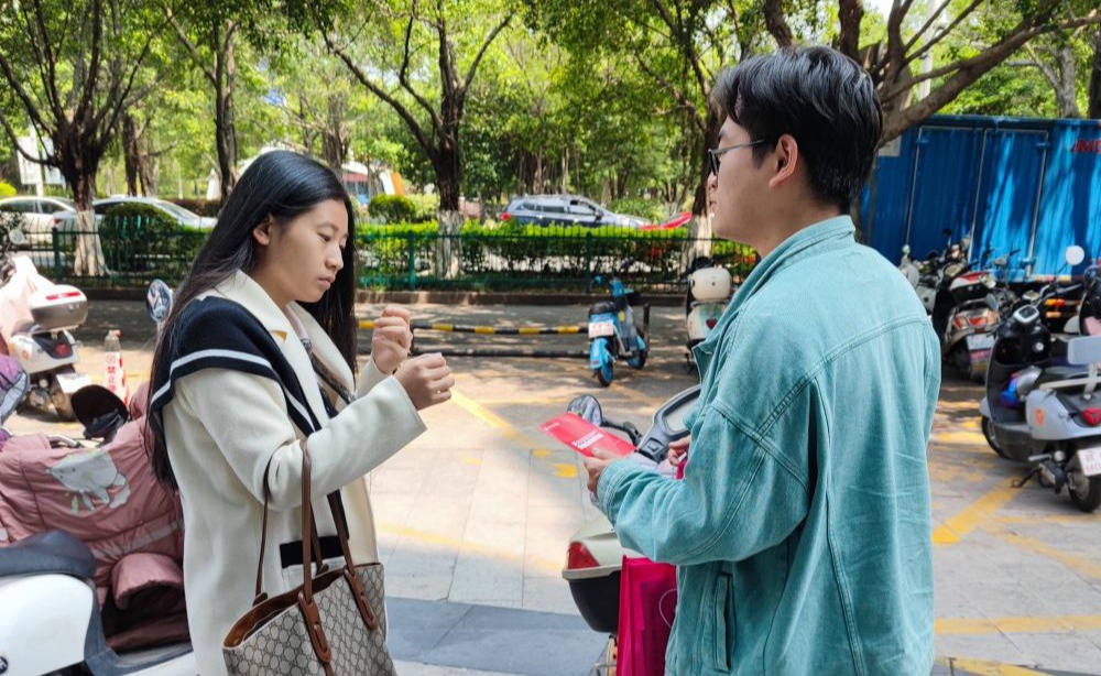 為踐行無償獻血志愿服務精神,劉偉敏同學與毛崇杰同學與獻血站工作人員在血站附近商場以及街道開展了無償獻血傳單派發活動,宣傳關于無償獻血的相關知識。