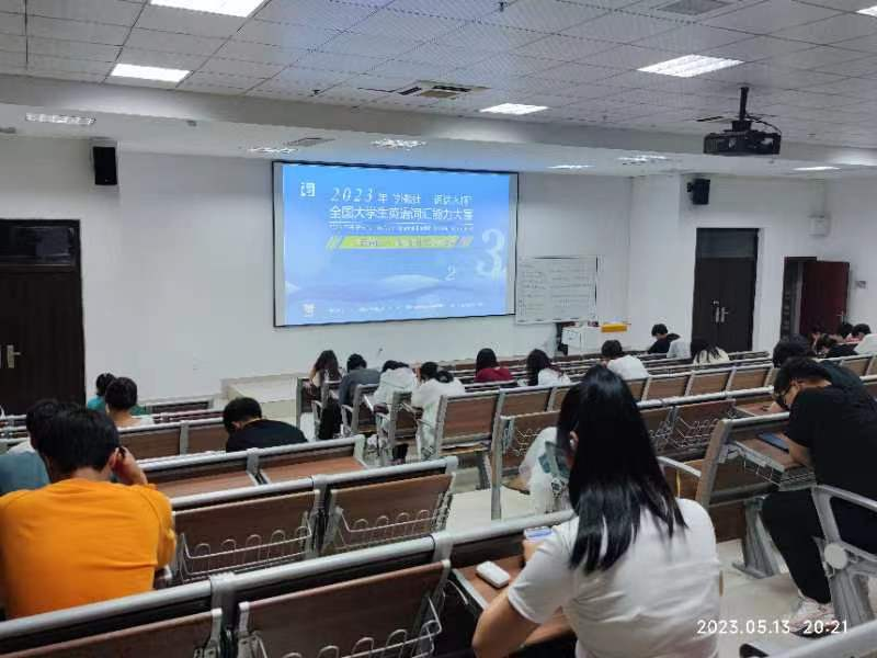 5月12日晚,百余名學生在陽明樓215階梯教室參加了2023年“外教社.詞達人杯”全國大學生英語詞匯能力大賽高職組省賽(線上賽)。