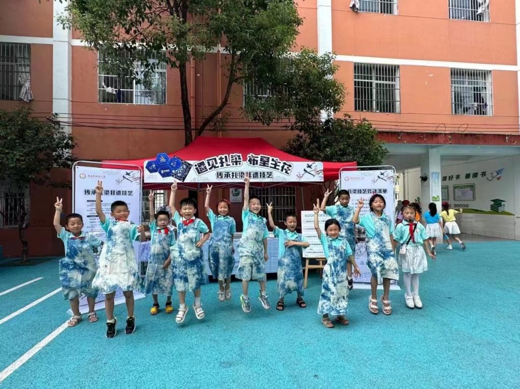 “非遺”傳承是一代拉著一代,手牽著手共同完成的事業(yè)。為了讓扎染非遺技藝在下一代孩子心里種下一顆興趣的種子,讓科普知識走進校園。6月1日,在兒童節(jié)這個特殊的日子里,藝術(shù)設計系教師、青年學生志愿者走進了贛縣區(qū)城關(guān)小學,開展“遇見扎染,布里生花”傳承扎染非遺技藝活動。