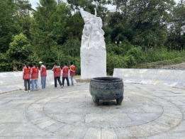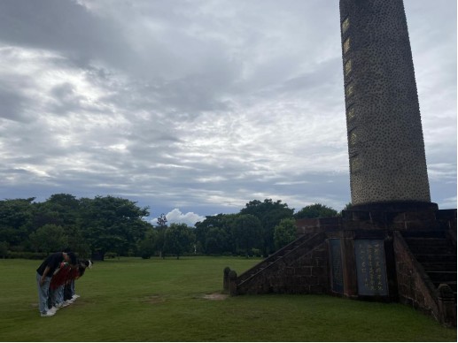最后,同學們瞻仰了紅軍烈士紀念塔,深切緬懷在戰火中犧牲的革命先烈。紅軍烈士紀念塔給成員們留下了深刻的印象,紀念塔廣場印有“踏著先烈血跡前進”8個大字,紅軍烈士紀念塔整個外形像一顆炮彈,其寓意“槍桿子里面出政權”,塔身正面從上到下嵌鑲了“紅軍烈士紀念塔”七個黑體大字。塔身并嵌有無數個小石塊,象征著無數個紅軍指戰員為了革命的理想而獻出了寶貴的生命。