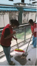 團隊成員在護工的指導(dǎo)下對敬老院進(jìn)行了環(huán)境衛(wèi)生清潔。成員們分工明確,協(xié)助打掃室內(nèi)衛(wèi)生,幫助老人整理衣物、疊被子。