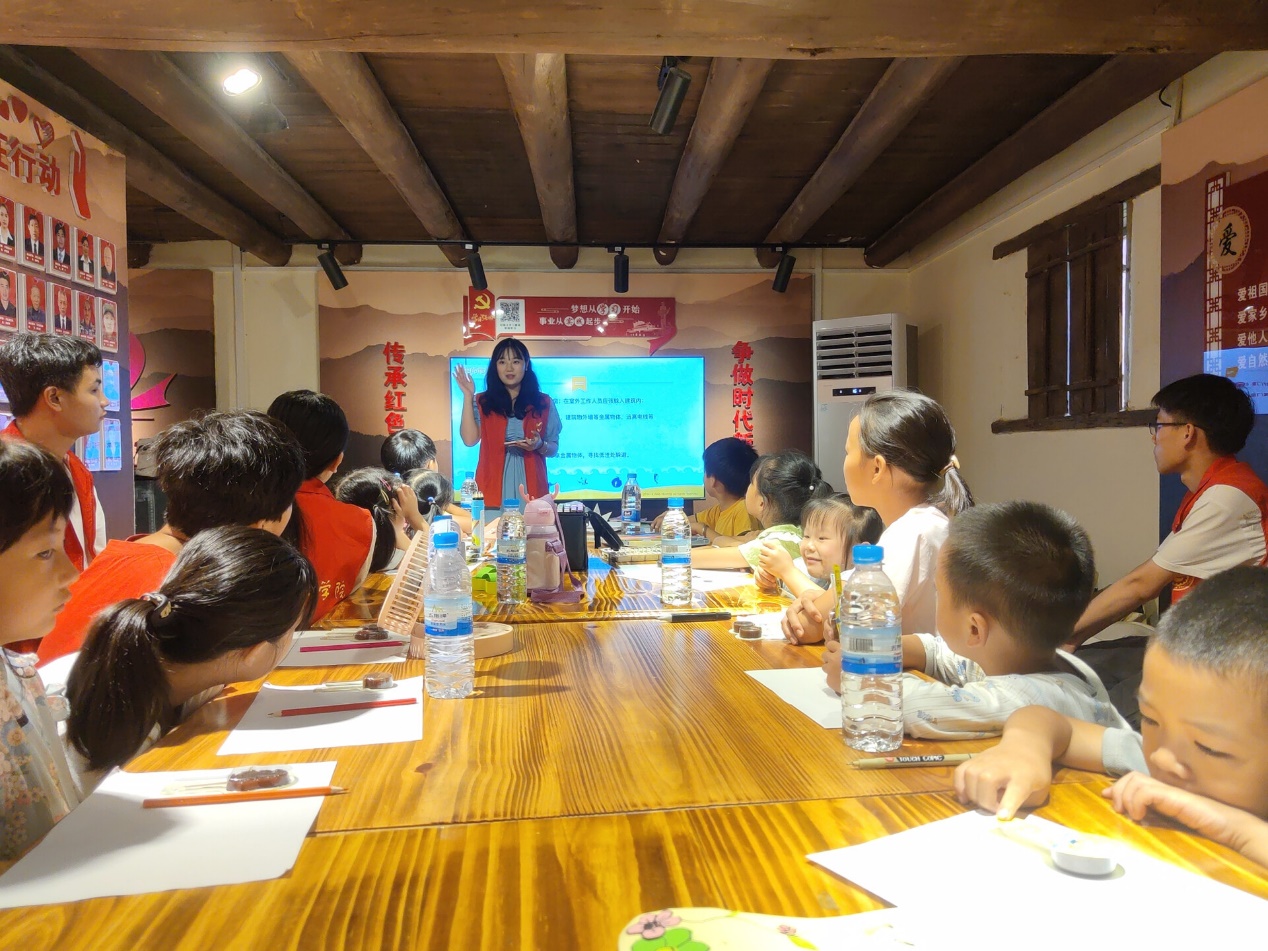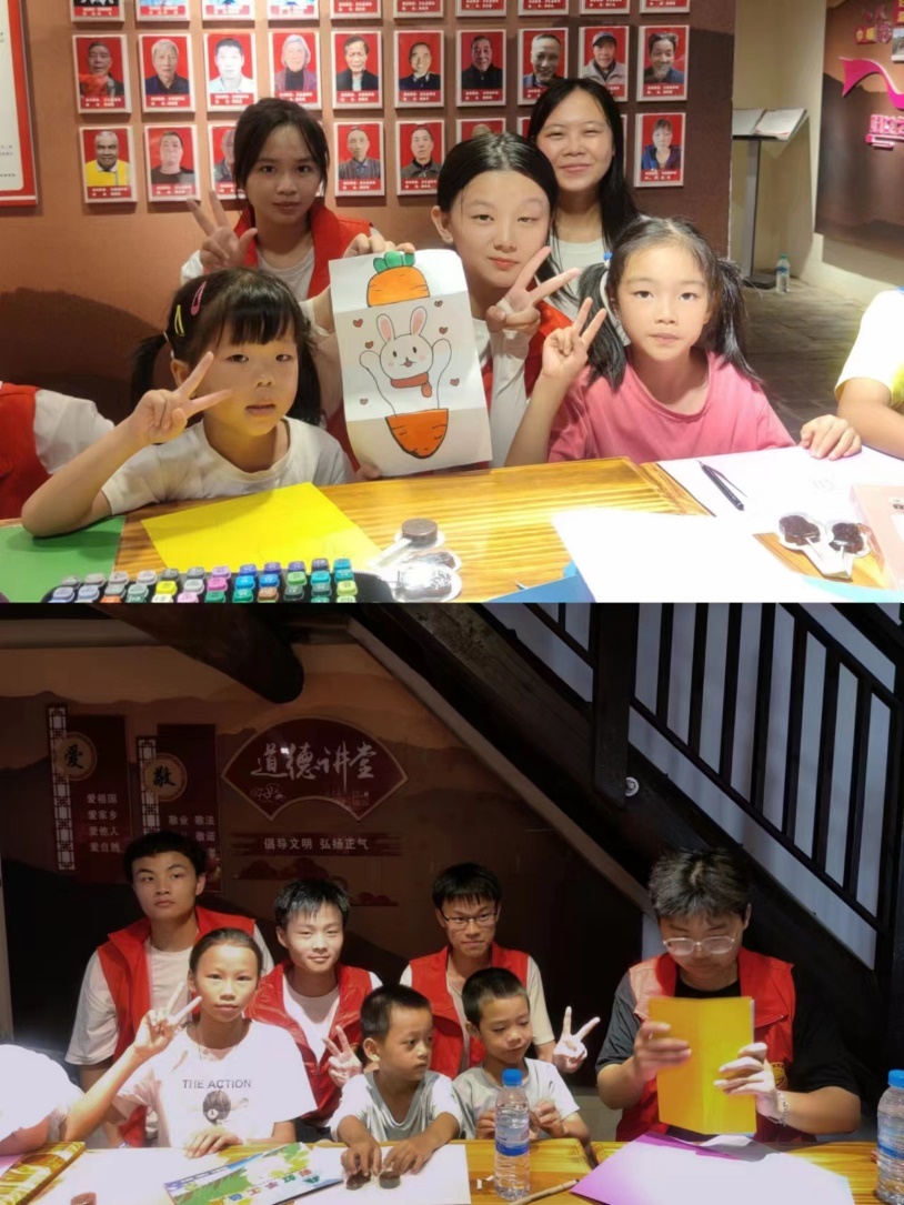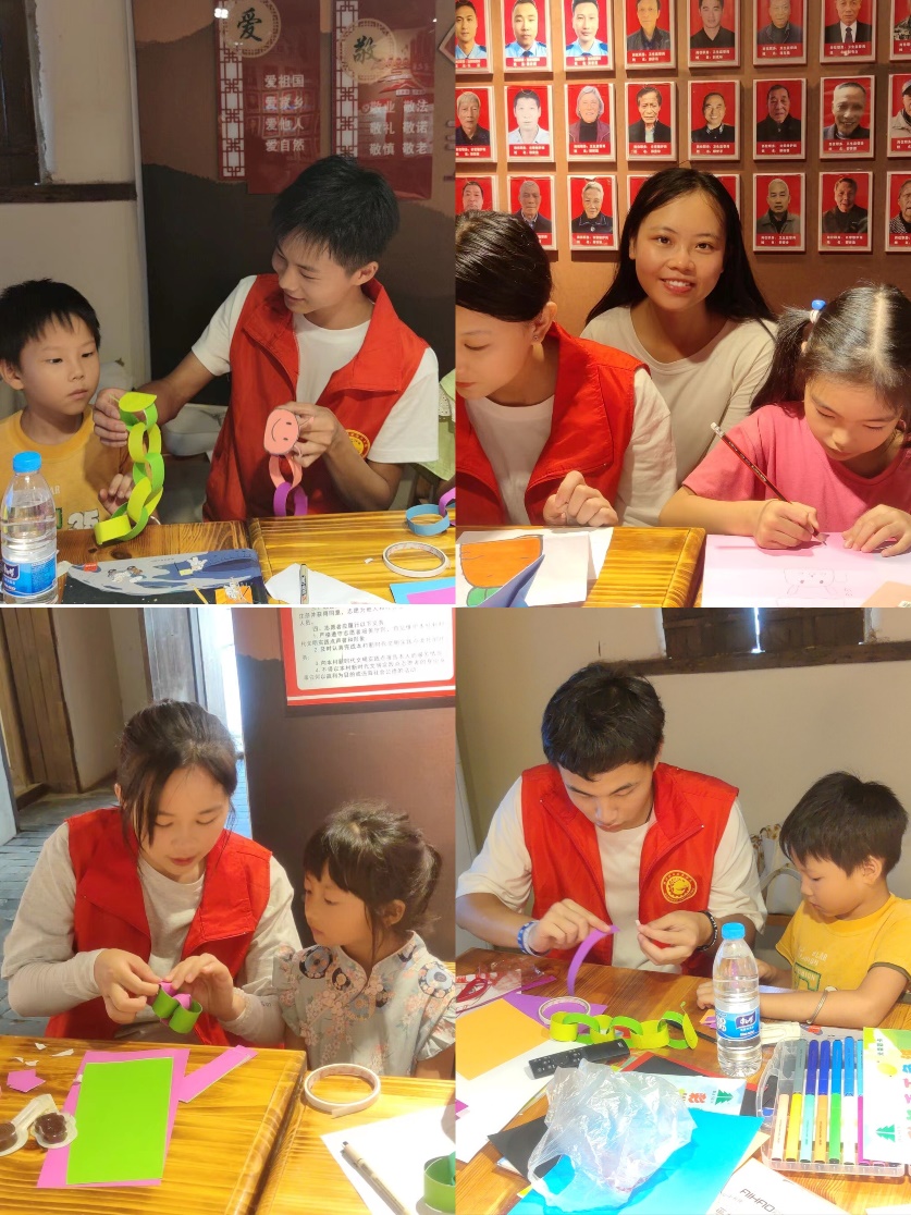 在安全教育課結束后,實踐隊員們帶領孩子們開展折紙、貼畫等趣味活動。孩子們結合自身生活經驗和興趣愛好,跟隨隊員講授步驟,相互模仿學習。手中的折紙通過折、疊、翻、拉等手法變幻無窮,立體圖形躍然而出,有紅旗、小白兔、毛毛蟲、千紙鶴等。