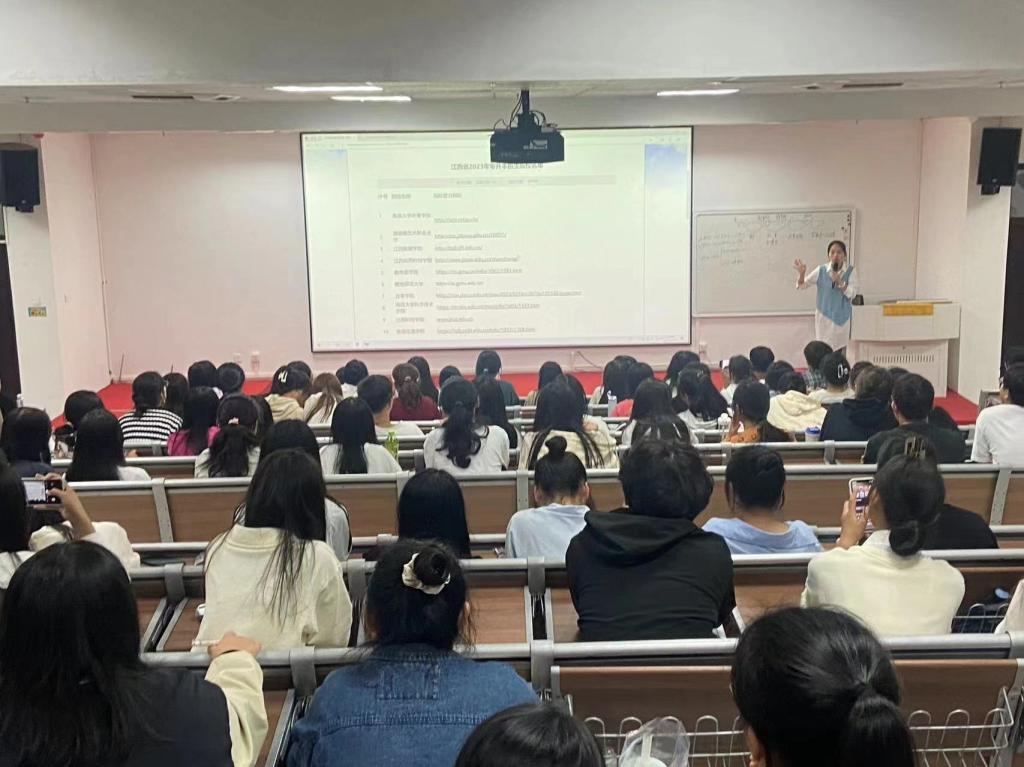 會上,楊婷老師首先圍繞《2023年江西省普通高校專升本考試各科目考試說明》《江西省2023年普通高校專升本考試應對專業(類)指導目錄》《江西省2023年專升本招生院校名單》,為學生詳細介紹報名時間及考試時間參考、報名條件和流程、考試對應專業(類)指導、各科目考試、招生院校說明等方面的內容。