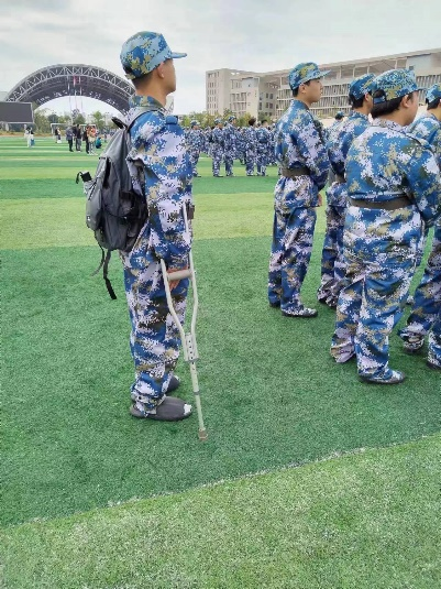 經(jīng)歷數(shù)天軍訓(xùn)之后,同學(xué)們收獲頗豐,汗水流淌著歡樂,歡樂包含著收獲,總有那么一個(gè)雙手拄著拐杖的男生,身姿挺拔,眼神堅(jiān)定。他就是電氣工程系電氣2315班的溫斌同學(xué)。 而那個(gè)手拄拐杖的男生即使腳踝扭傷也仍然要求參加軍訓(xùn),他即使站在一旁也仍與同學(xué)們動(dòng)作相差無幾甚至比一些同學(xué)更加標(biāo)準(zhǔn),眼神堅(jiān)毅,身姿挺直。