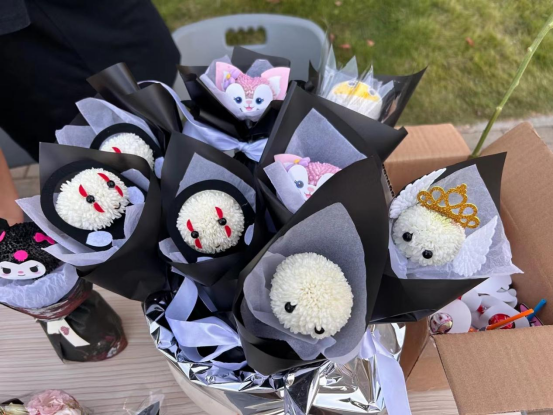 在產品研發階段,學生們運用所學的經濟學知識,對市場需求和熱點進行深入調研,確定了以乒乓菊為主要材料,結合熱門卡通形象,手工制作花束作為此次實訓的主要銷售產品。在制作過程中,學生們還需根據所學的管理學原理,合理分配資源,控制成本,提高附加值,確保產品質量。