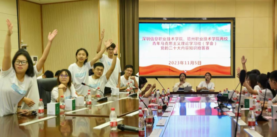 為加強(qiáng)對(duì)黨的二十大內(nèi)容的學(xué)習(xí),11月5日,深圳信息職業(yè)技術(shù)學(xué)院、贛州職業(yè)技術(shù)學(xué)院兩校青年馬克思主義理論學(xué)習(xí)社(學(xué)會(huì))在兩校教師劉琦爽、鐘燕華的指導(dǎo)下,開(kāi)展了黨的二十大內(nèi)容知識(shí)搶答賽。