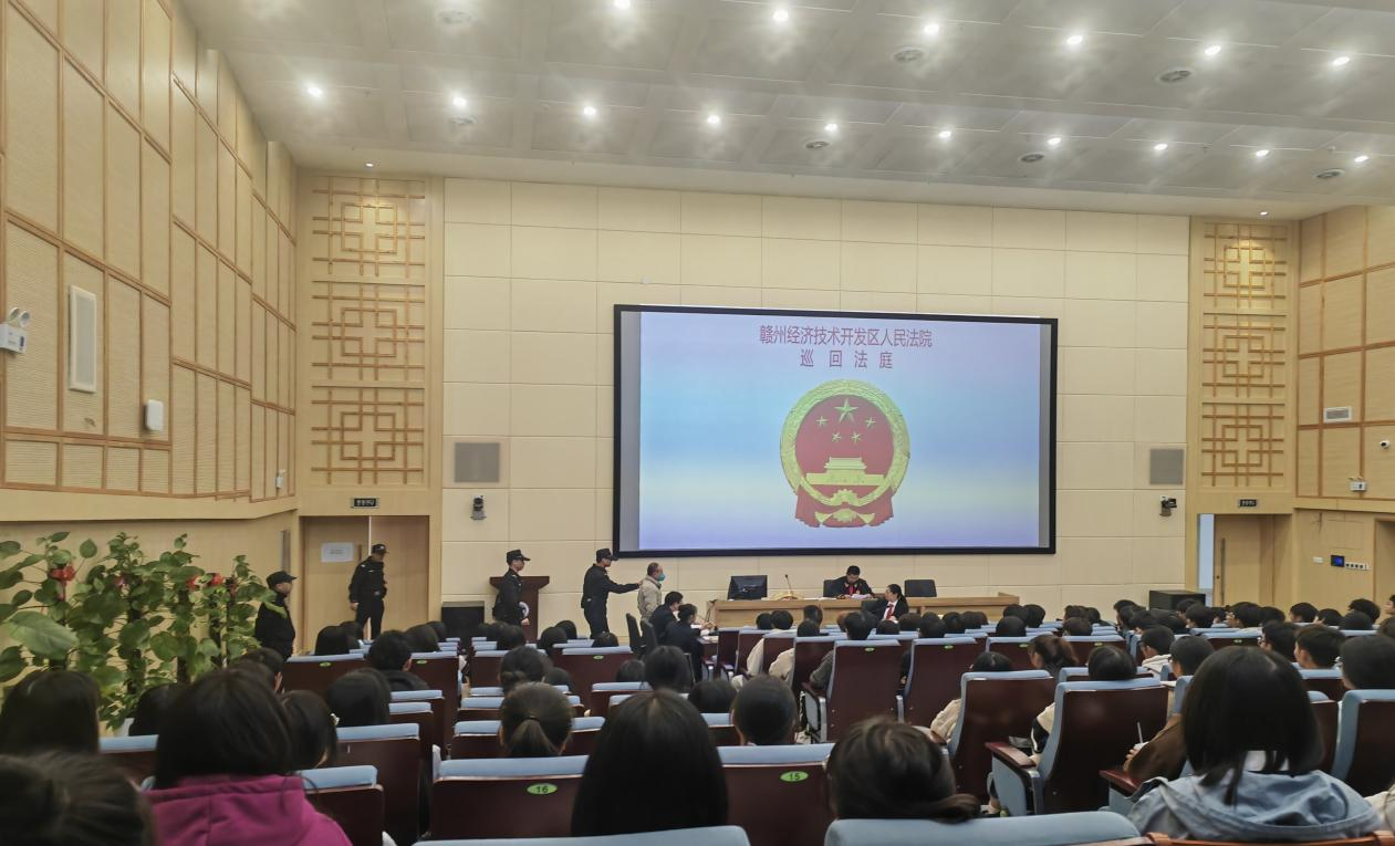 為嚴厲打擊電信網絡詐騙,加大校園普法宣傳力度,讓廣大學生了解法律,增強法律意識,維護自身權益。11月15日下午,贛州市經濟開發區人民法院將一起涉詐案件庭審現場“搬到”學院,學院220余名師生通過現場旁聽的方式直擊庭審現場,“零距離”接受法治教育。