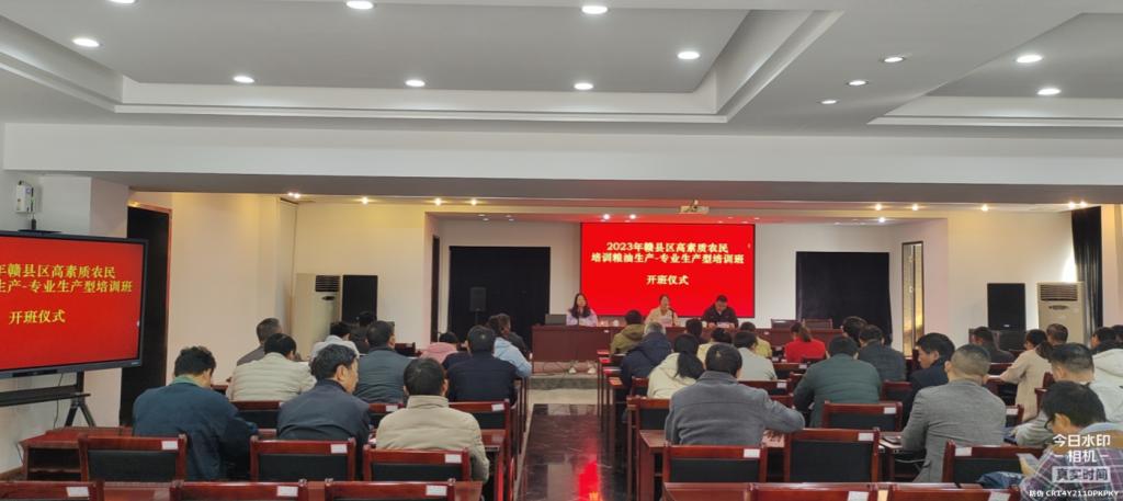 11月21日上午,贛縣區2023年高素質農民糧油生產—專業生產型培訓班順利開班,出席開班儀式的有贛縣區農業農村局科教生態股負責人黃慶婷,以及贛州職業技術學院(贛州農業學校、江西贛州技師學院)繼續教育與培訓部工作人員。