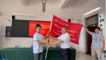 儀式最后,曾海鵬為“三下鄉(xiāng)”社會(huì)實(shí)踐團(tuán)隊(duì)授旗。