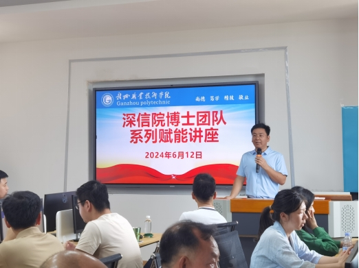 為加快形成贛州職業(yè)技術(shù)學(xué)院與深圳信息職業(yè)技術(shù)學(xué)院高質(zhì)量辦學(xué)成果,提升兩校教學(xué)與科研等方面深度合作成效,6月12日,經(jīng)濟管理學(xué)院特邀深圳信息職業(yè)技術(shù)學(xué)院財經(jīng)學(xué)院博士團隊來校進行系列賦能講座。學(xué)校黨委委員、教務(wù)處處長于成龍發(fā)表致詞,講座由經(jīng)濟管理學(xué)院負責人肖首榮、副院長肖強先后主持,全體經(jīng)濟管理學(xué)院教師、優(yōu)秀學(xué)生代表聆聽了講座。