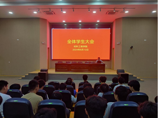 期末考試在即,為激勵全院師生以飽滿的熱情、昂揚的斗志、必勝的信心和科學的方法投入到備考中去,進一步系統總結材料工程學院本學期的各項工作,合理科學規劃展望未來發展。近日,材料工程學院召開了2024年夏季學期全體學生思想教育大會。