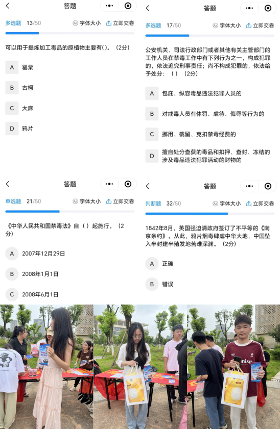 經(jīng)濟(jì)管理學(xué)院利用線上掃碼答題的方式,組織學(xué)生參與“禁毒知識有獎答題”活動,題目內(nèi)容涵蓋了毒品的種類、危害、識別方法以及相關(guān)法律法規(guī)等多個方面。通過趣味性的問答形式,讓同學(xué)們在輕松愉快的氛圍中學(xué)習(xí)禁毒知識,有效地提升了他們學(xué)習(xí)禁毒知識的積極性,同學(xué)們爭相答題,活動現(xiàn)場氣氛熱烈。