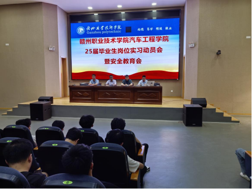 根據汽車類專業人才培養方案,為了讓學生們更好地將所學理論知識與實際操作相結合,提升專業素養和綜合能力,為順利開展2025屆畢業崗位實習工作,確保實習質量、加強實習教學管理,汽車工程學院于7月3日下午,在公共實訓中心學術報告廳召開2025屆畢業生畢業實習動員會暨安全教育會議,汽車工程學院領導班子、各教研室主任、畢業班(輔導員)班主任、實習指導老師參加會議,會議由溫舉林主持。