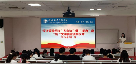 為強(qiáng)化宿舍管理育人功能,構(gòu)建良好宿舍文化與溫馨的住宿環(huán)境,經(jīng)濟(jì)管理學(xué)院在2024年7月1日中午召開了本學(xué)期文明寢室表彰大會(huì),獲獎(jiǎng)寢室及部分寢室代表參加本次會(huì)議。