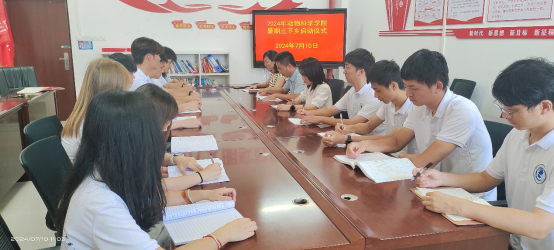 為深入學習習近平新時代中國特色社會主義思想,全面貫徹落實黨的二十大精神和習近平總書記考察江西重要講話精神,將農業(yè)先進科技帶進農村,踐行新時代青年的時代使命,把課堂所學與實踐相結合,發(fā)展鄉(xiāng)村農業(yè)創(chuàng)新。7月10日上午,贛州職業(yè)技術學院動物科學學院在應星樓415進行2024年暑假“三下鄉(xiāng)”社會實踐啟動儀式,會議由動物科學學院黨支部副書記劉燕娜主持,動物科學學院黨支部書記、院長吳輝生、校團委負責人肖月、帶隊老師以及“畜牧振興團”、“牧心先鋒隊”團員參加此次啟動儀式。