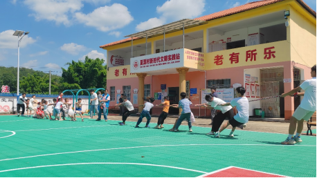 最后,志愿者們與小朋友們來到港灣廣場進行了精彩絕倫的拔河比賽。所有的小朋友們分為兩組整裝待發。比賽開始,一聲哨聲,聲聲吶喊,雙方隊員雙方隊員齊力而動。在藍天下錘煉身體素質,在力竭中收獲團結精神。快樂的時光總是短暫的,我們的童心港灣就到此告一段落,希望夏潭兒童們可以茁壯健康成長。