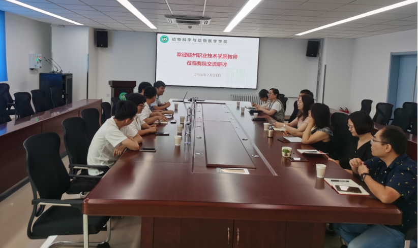 7月24日上午,我校動物科學學院辦公室主任楊加明帶隊赴天津農學院交流學習,天津農學院動物科學與動物醫學學院院長丁向彬接待并參加座談。座談會后參觀了天津市農業動物繁育與健康養殖重點實驗室及天津農學院附屬動物醫院。