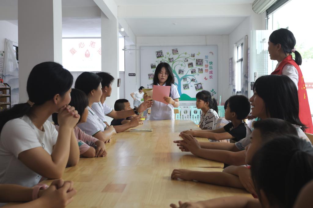 活動(dòng)伊始,實(shí)踐團(tuán)隊(duì)的同學(xué)們先與孩子們一起玩起了桌面游戲和體育游戲,增進(jìn)了彼此的了解和感情。隨后,他們帶領(lǐng)孩子們參與了一系列與當(dāng)?shù)靥厣r(nóng)產(chǎn)品相關(guān)的趣味互動(dòng)環(huán)節(jié)。