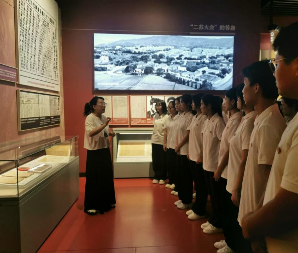 在二蘇大會(huì)址,同學(xué)們走進(jìn)了當(dāng)年的會(huì)場(chǎng),仿佛穿越時(shí)空回到了那個(gè)激情燃燒的年代。他們仔細(xì)聆聽(tīng)關(guān)于二蘇大召開(kāi)的歷史背景和重要意義的介紹,深刻體會(huì)到了蘇維埃政權(quán)初創(chuàng)時(shí)期的艱辛與不易。