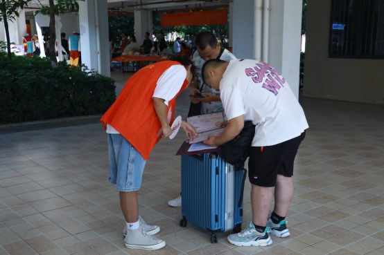 當新生們拖著行李,帶著對未來的憧憬來到校門口時,志愿者們早已等候在此。他們熱情地迎上前去,主動接過沉重的行囊。