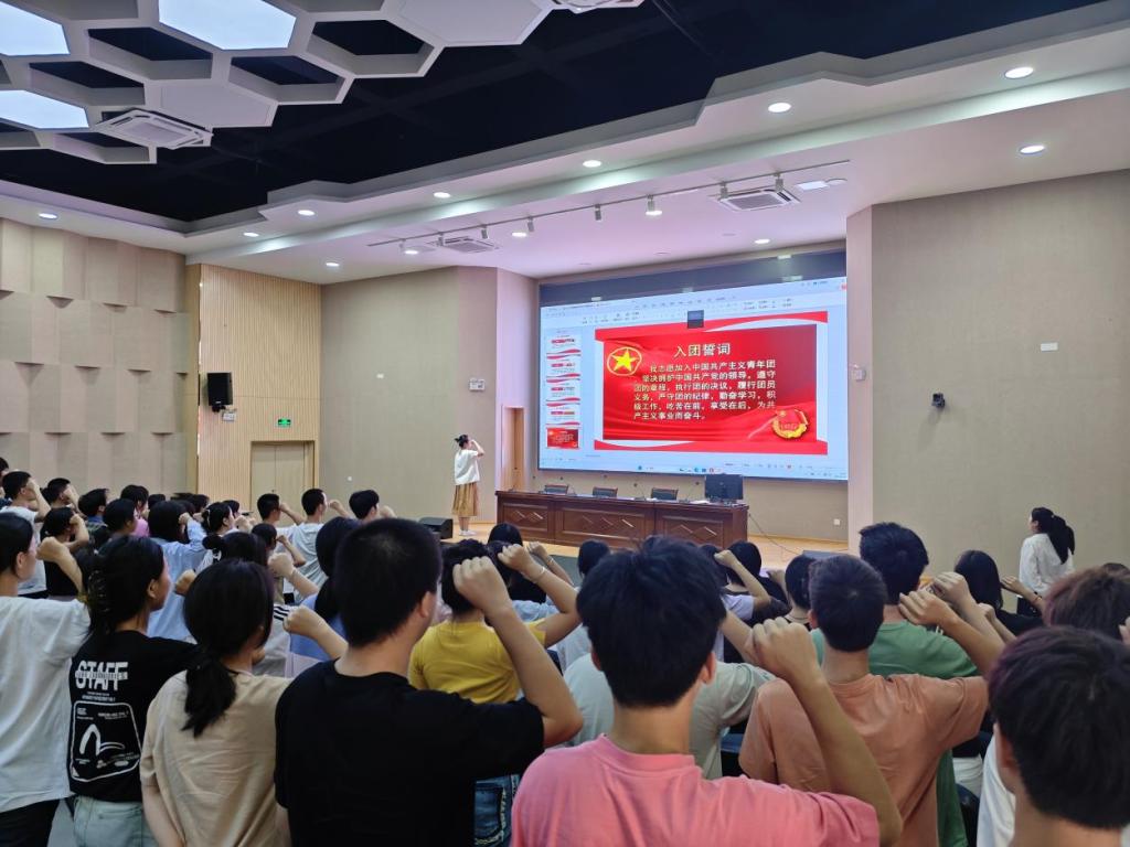 全體團員在肖蔚老師的帶領(lǐng)下,齊聲重溫入團誓詞,進一步喚醒了新生團員的身份意識,增強了新生團員的光榮感與使命感。