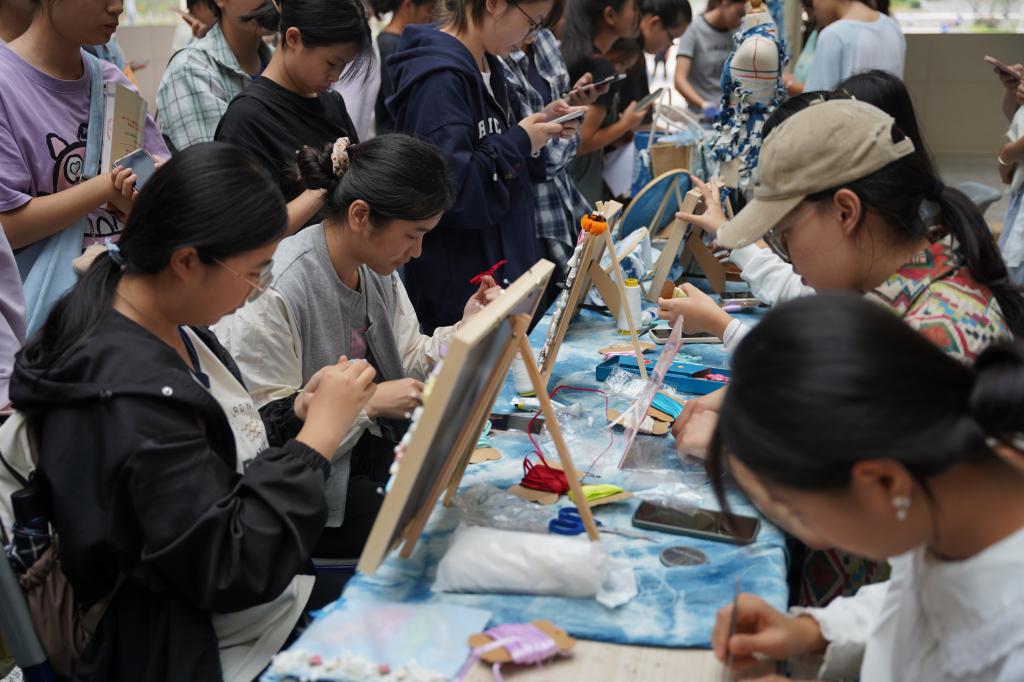 活動展出了非遺燈彩制作技藝、手工扎染技藝、大漆水拓扇、盤扣、凸版印刷等江西傳統技藝及贛州城市數字風情展。在活動現場,人頭攢動,每個展臺都吸引了眾多師生駐足,同學們爭相體驗,共同感受江西傳統文化的獨特魅力和深厚底蘊。