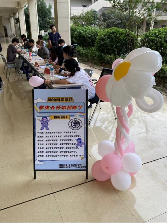 隨著新學期的開始,學院又迎來了一批充滿青春氣息的新生。為了讓同學們在學校里能學到更多的知識,更為了更好的開展學院工作,同時保證學院團總支和學生會不斷有新鮮血液的注入。動物科學學院于9月25日在應星樓架空層展開招新活動。