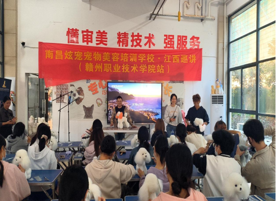 11月8日,動物科學學院“產教融合·能工巧匠進校園”系列活動專題講座第二期在寵物美容實訓室舉行。南昌炫寵寵物美容培訓學校校長NGKC教師級寵物美容導師鄭炫、副校長A級寵物美容師李檢梅受邀為我校寵物醫療技術專業進行寵物美容創意造型專題講座。