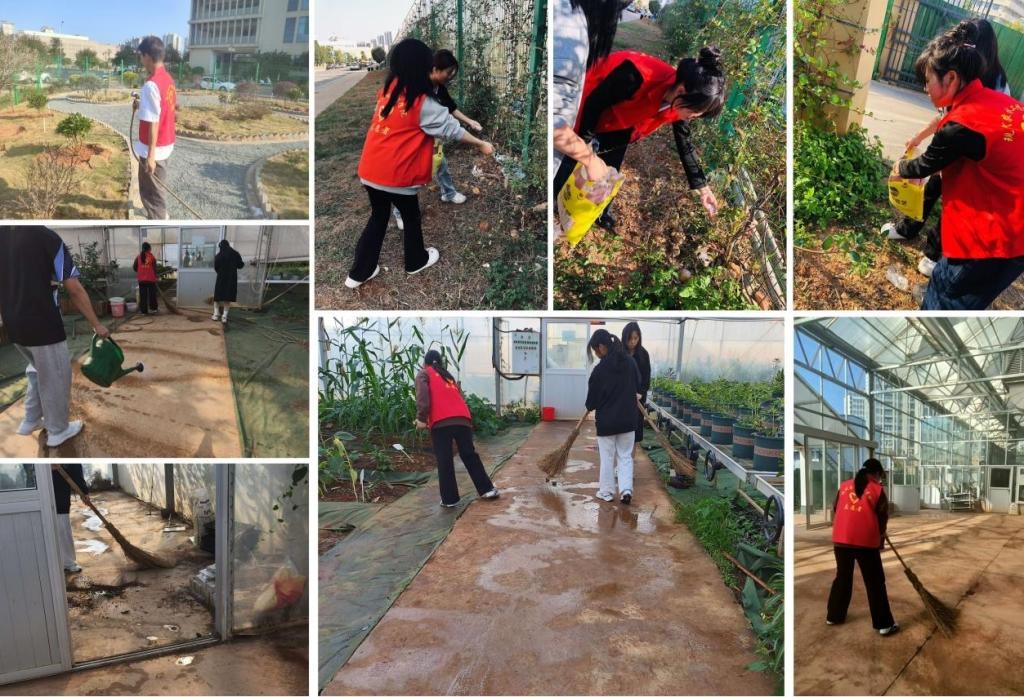 在學院大棚內,志愿者們忙碌的身影也成為一道亮麗的風景線。他們認真收納大棚工具、精心保養器械、悉心打理作物,進行補肥、澆水等工作,并仔細清理大棚路面。這些行動在維護大棚日常教研環境的基礎上,進一步強化了志愿者們對學院大棚的情感認同,同時也鞏固了同學們在課堂上學到的專業知識,為學院大棚的可持續發展奠定了堅實基礎。