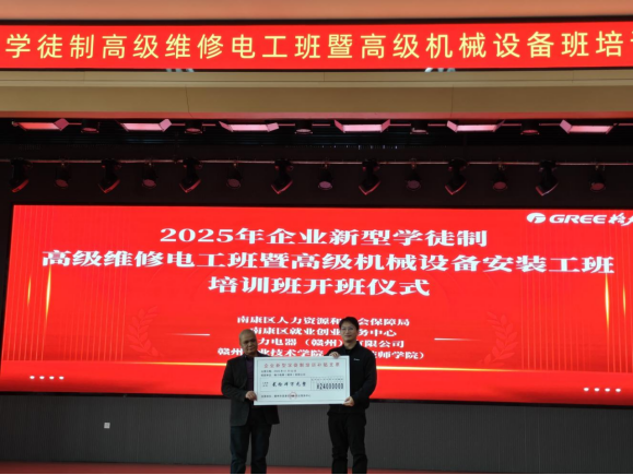 1月2日,格力電器(贛州)有限公司新型學(xué)徒制高級維修電工暨高級機(jī)械設(shè)備安裝工培訓(xùn)班開班儀式在格力電器(贛州)有限公司順利舉行,南康區(qū)人力資源和社會(huì)保障局黨組成員、副局長申明東,學(xué)校黨委委員、副院長方敏,格力電器(贛州)有限公司總經(jīng)辦主任洪志勇出席了開班儀式,各有關(guān)部門負(fù)責(zé)人、教師代表和100名新型學(xué)徒制學(xué)員參加了開班儀式。