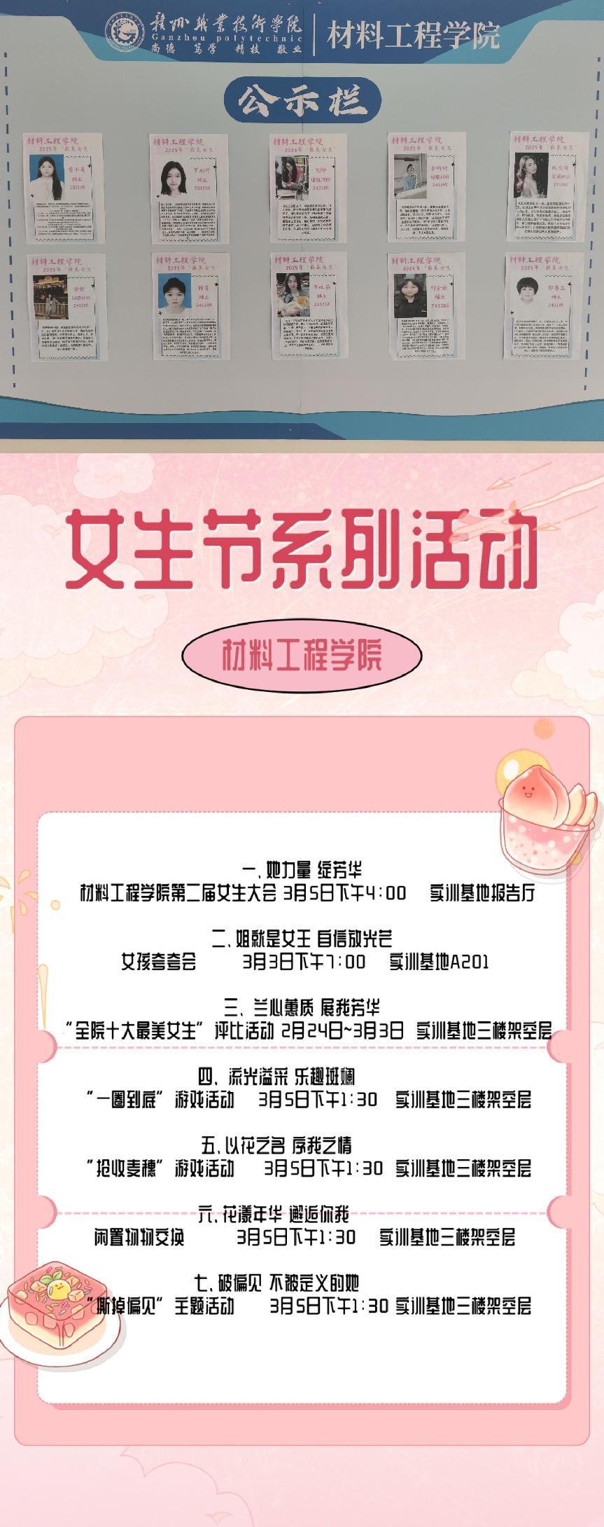 春風拂面,芳華正好。3月5日,材料工程學院第二屆以“她力量·綻芳華”為主題的女生節圓滿收官。本屆活動聚焦女性成長、自信表達,為期一周的絢麗活動如春日畫卷般次第展開,以豐富多樣的形式詮釋新時代女性的力量與風采。