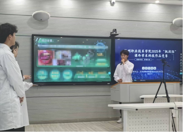 路演現場,六支優秀團隊圍繞人工智能、綠色能源、鄉村振興、智能制造等前沿領域,通過PPT講解、實物演示及視頻展示等形式,全面呈現項目的創新性、應用價值與社會意義。參賽作品充分展現了贛州職院學子扎實的專業素養和敏銳的科技洞察力,部分項目已獲專利支持或企業合作意向,彰顯了我校“以賽促學、以賽促創”的育人成效。