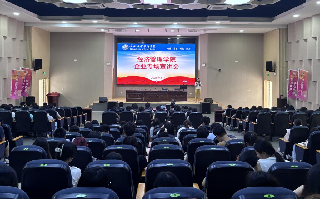 為打通校企人才對接“最后一公里”,5月14日下午,經濟管理學院精心策劃的“匠心筑夢·職引未來”企業專場宣講會在實訓基地報告廳順利舉行。此次宣講會特別邀請了溫州瑞池酒店管理有限公司、深圳市龍崗區保安服務有限公司兩家企業代表參加,面向經濟管理學院2026屆500余名學生實現就業服務全覆蓋。
