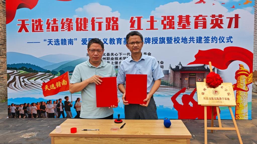 為深入貫徹落實習近平總書記關于教育的重要論述和全國教育大會精神,加強愛國主義教育和紅色文化傳承,5月25日,學校與崇義“天選贛南”愛國主義教育基地正式簽訂共建協議。崇義縣關工委、上堡鄉關工委領導,“天選贛南”愛國主義教育基地領導,贛州職業技術學院“中央蘇區紅色基因傳承研究中心”老師和青年馬克思主義學習社學生等一百余人參加了共建協議簽約儀式。