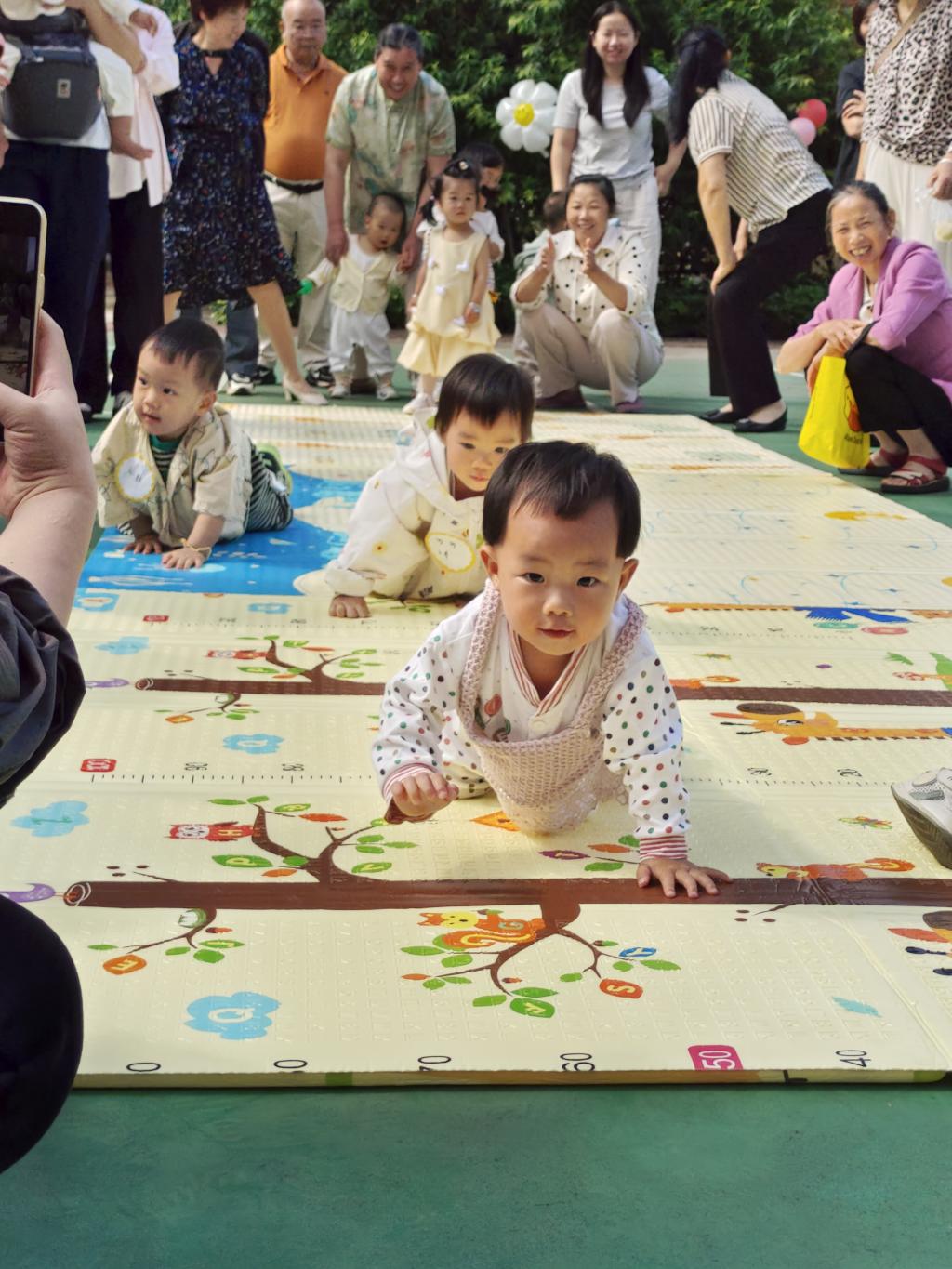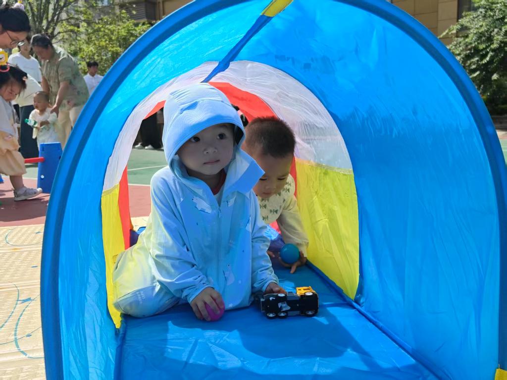 活動吸引了近20組家庭參與,現場設置了健康體檢區、親子游戲區、知識科普區等多個功能區,全程由托育專業學生提供專業服務。親子游戲區包含三大板塊:專為6 - 18個月寶寶設計的萌寶爬爬賽,有柔軟地墊和玩具逗引,寶貝沖刺家長加油;彩虹傘奇幻世界里,超大彩虹傘下家長和小老師晃動傘邊,寶貝穿梭其中感受光影色彩,增進親子互動;萬象組合探險提供鉆洞、平衡木等器材,寶貝探索時鍛煉大肌肉,培養勇氣與協調性。