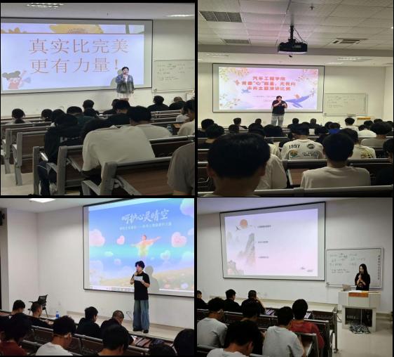比賽現場,來自汽車工程學院不同專業、不同年級的8名參賽選手依次登臺,以飽滿的熱情、真摯的情感和鏗鏘有力的語言,深情詮釋著對心理健康的深刻理解與感悟。他們或結合自身經歷,講述在面對學業壓力、人際交往困惑時如何調整心態,實現自我成長;或分享身邊同學戰勝心理困境的勵志故事,傳遞積極向上的正能量;又或是引用心理學知識和名人名言,從理論高度剖析心理健康的重要性。選手們飽含深情的演講,如同磁石般吸引著觀眾,不時激起現場陣陣掌聲,將比賽氣氛推向一個又一個高潮。