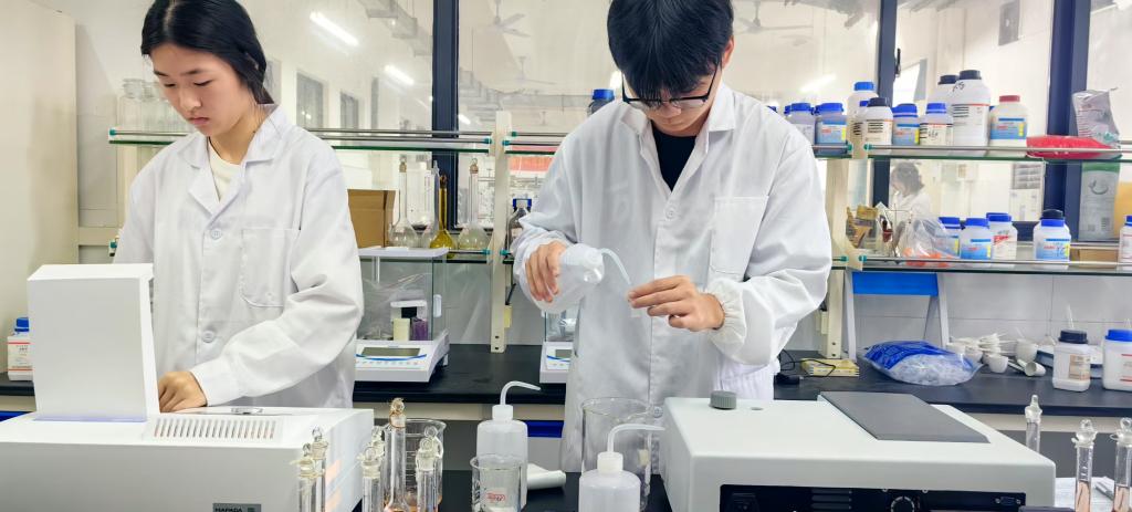 化學實驗技術賽項由甘易華、楊成峻指導,聚焦分光光度法測定鐵含量全流程,涵蓋標準液配制、標準曲線繪制、樣品測定及數據報告撰寫。賽事全面對接現代分析實驗室規范流程,強調操作精準度與數據可靠性,突出學生在“儀器—數據—決策”全過程中的綜合能力。該賽項有效提升了學生在分析檢測、質量把控與規范文書等方面的實戰能力,為其走向食品、醫藥、環保等產業領域打下堅實技術根基。