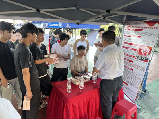 活動現場,人民武裝部的工作人員早早布置好了場地。征兵宣傳展板詳細介紹了征兵政策、報名流程、服役待遇以及退役后的發展機會等內容,吸引了眾多畢業生駐足觀看。現場還準備并發放了征兵宣傳手冊,手冊內容詳實,涵蓋了從報名到入伍的各個環節。